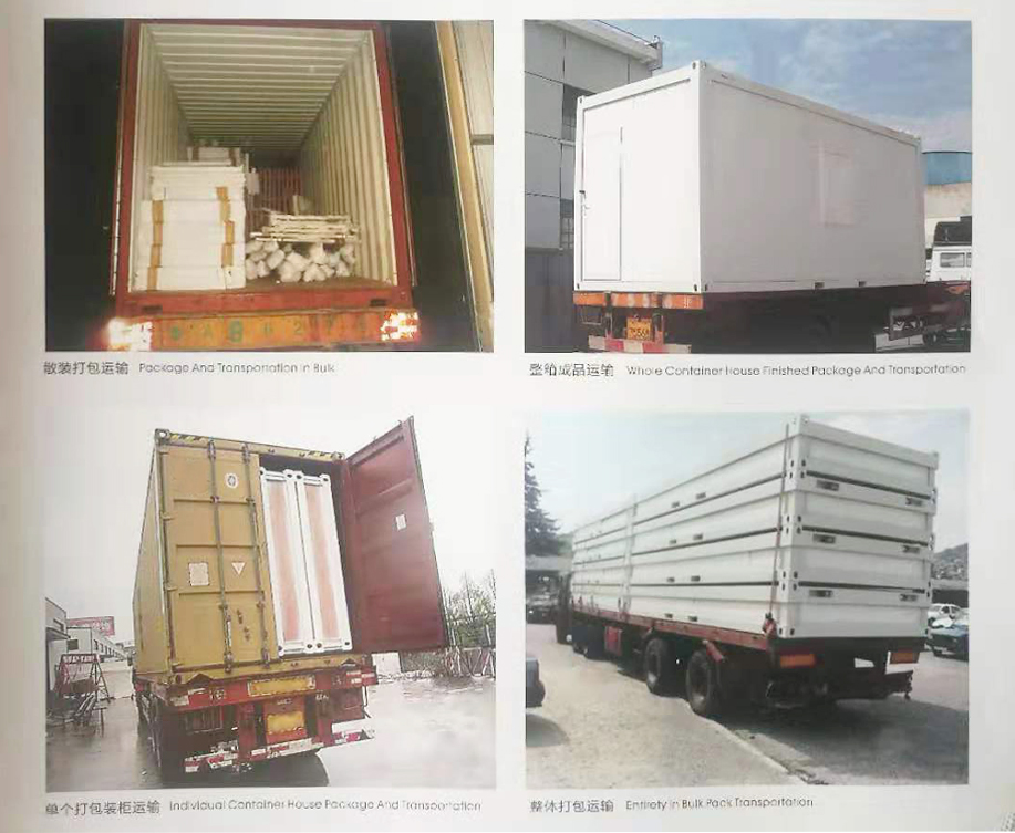 | 根据集装箱房屋的构件大小以及不同的组装方式,组装式集装箱房屋的运输方式主要可分为散装打包式、单个打包装柜式、整箱运输式及整体打包运输式4种运输方式。每种运输方式都有各自的优点,客户根据自身需求来选择购买集装箱房屋的种类,同时也决定了组装式集装箱房屋的运输方式。 |