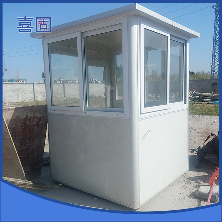 岗亭支撑柱采用优质的塑钢型材。身采用优质的镀锌板,内装修取用优质的防潮板,窗户采用塑钢型材,配透明玻璃,底架用角铁,中间夹板,上面铺盖普通地板胶,岗亭内配20W是照明光管,工作台(带两个抽屉)电源开关插座,顶置旋转式,门锁 ,顶取用优质的玻璃钢材料制成,门锁为普通球形锁。