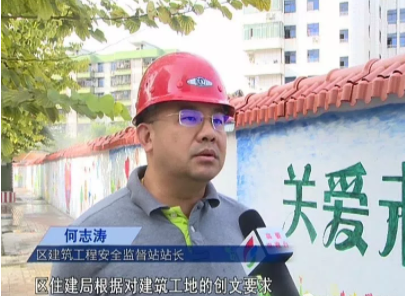 区住建局根据对建筑工地的创文要求,迅速对全区各个在建的建筑工地测评点进行全面检查,(要求)围挡面积不少于30%的公益广告,内容涉及关爱未成年人,社会主义核心价值观和法治观念等一系列内容,我们会及时对标创文要求,及时检查更换。