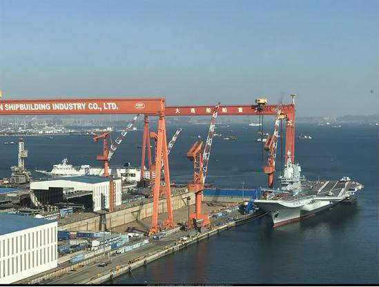 国产航母舰体疑似重新刷漆 甲板仍摆放活动板房