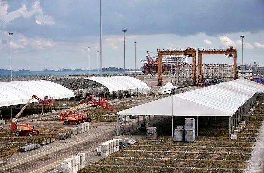 新加坡在建方舱医院的工地现场