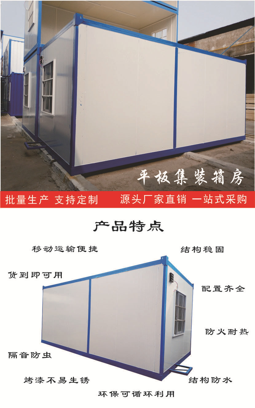 主营生产:活动板房、住人集装箱房、钢结构厂房、轻钢组合房、轻钢别墅、箱式活动房、非标订制活动板房、钢结构大棚、工地围蔽围挡围墙、室内净化隔墙、移动厕所、保安亭岗亭等业务。
