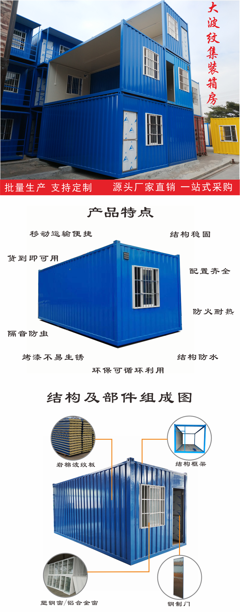 主营生产:活动板房、住人集装箱房、钢结构厂房、轻钢组合房、轻钢别墅、箱式活动房、非标订制活动板房、钢结构大棚、工地围蔽围挡围墙、室内净化隔墙、移动厕所、保安亭岗亭等业务。